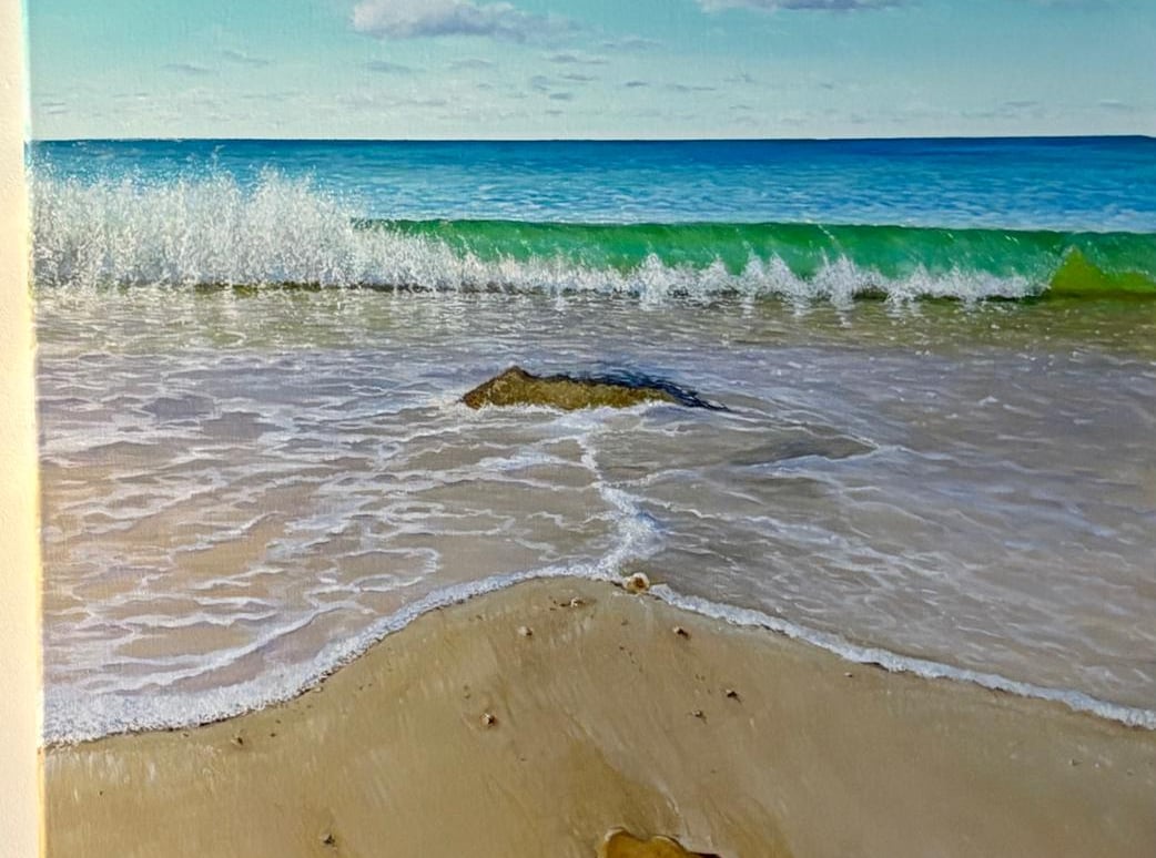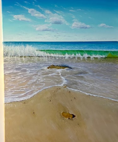Beach Surf is an original oil painting I created to celebrate the energy and freedom of the ocean. I wanted to capture that exhilarating moment when the surf rolls in, full of movement, sunlight, and salt-air freshness. With sweeping brushstrokes and layered textures, I aimed to bring the waves to life so you can almost feel the sea breeze and hear the distant roar of the surf.