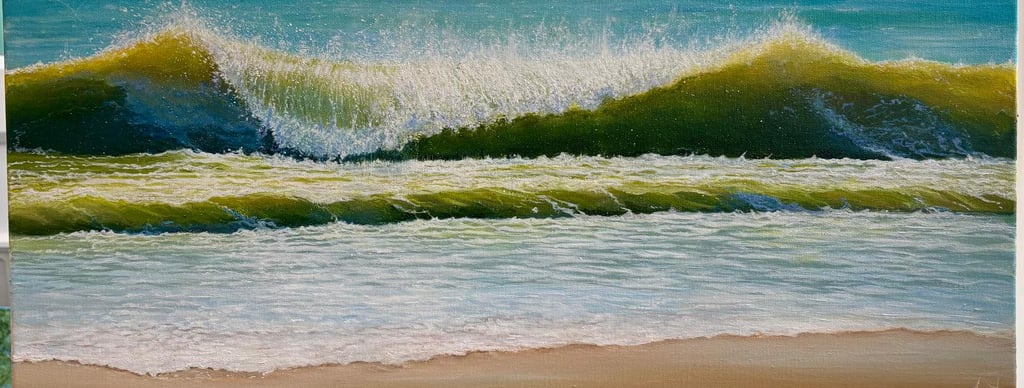 Green Waves - 20 x 16 inch. Original oil painting on deep edge canvas £160