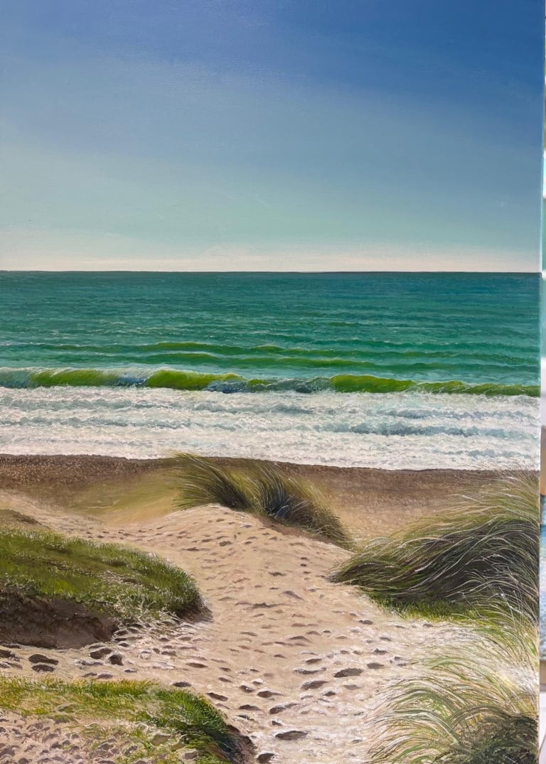 Hengistbury Head Dunes. Large painting 90 x 60 cm original oil on canvas. £300