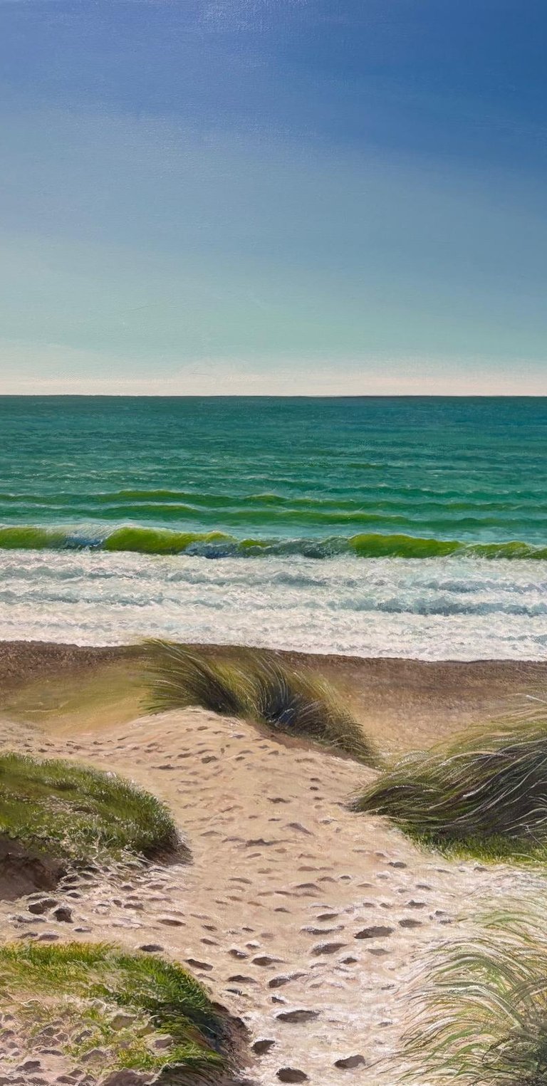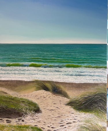Through layered brushwork and natural tones, the painting explores texture, light, and atmosphere, celebrating the understated beauty of this unique coastal environment.