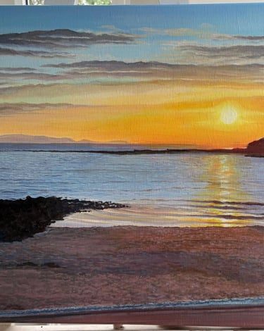As I painted, I wanted to reflect not just the beauty of the landscape, but the feeling of watching day fade into night—when the air cools, the sea calms, and the sky becomes a shifting tapestry of light and colour. This piece found its way to a new home, and I’m grateful to know it’s being enjoyed by someone who shares a love for Scotland’s stunning coastline.