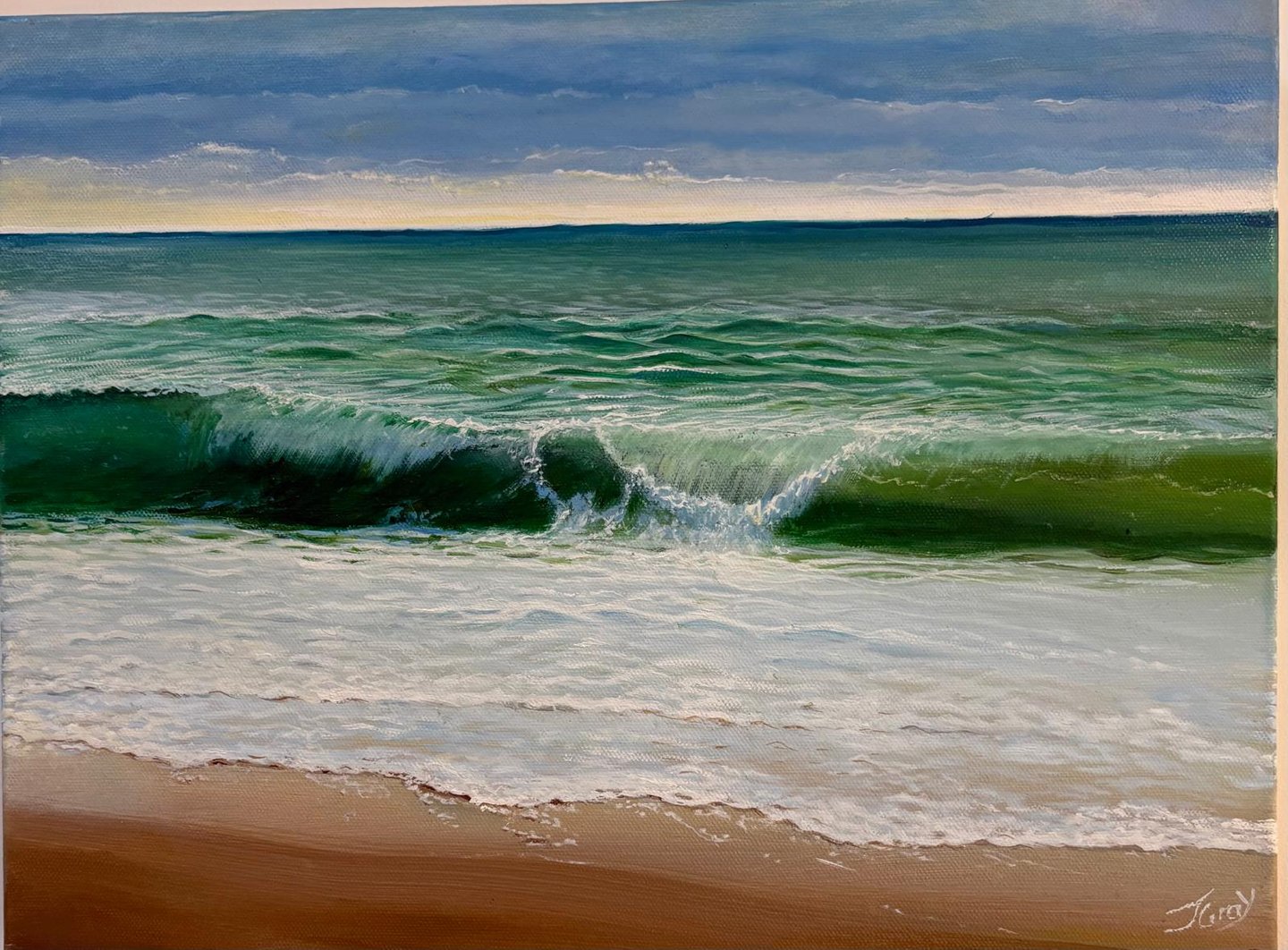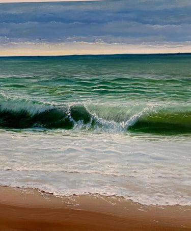 Winter Waves is an original oil painting that I created to capture the quiet power of the sea during the colder months. I was inspired by the way winter light softens the shoreline and how each wave carries both strength and stillness. Using layered brushwork and cool, atmospheric tones, I aimed to bring a sense of movement and calm to the canvas.
