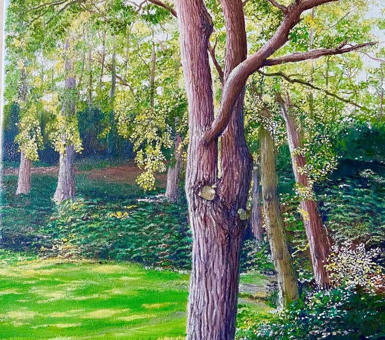 Painted on a deep edge canvas, this piece has a modern, gallery-style presence and is ready to hang without the need for a frame. I imagine it bringing a sense of woodland peace and natural warmth into a living space, reading nook, or any room that could benefit from a quiet retreat into nature.